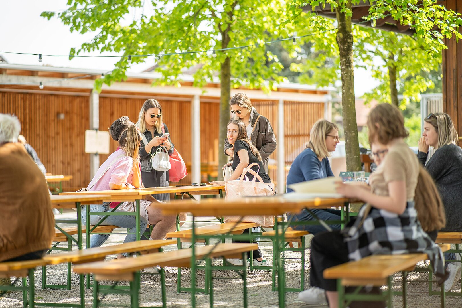 Zwischendurch können die Besucher-/innen kühle Getränke, Kaffee sowie eine Auswahl an selbstgebackenen veganen und traditionellen Kuchen genießen, die von fleißigen Freundinnen und Familienmitgliedern beigesteuert werden. Für den kleinen Hunger gibt es Gebäck der Landbäckerei Neubacher und selbstgemachten Hummus.