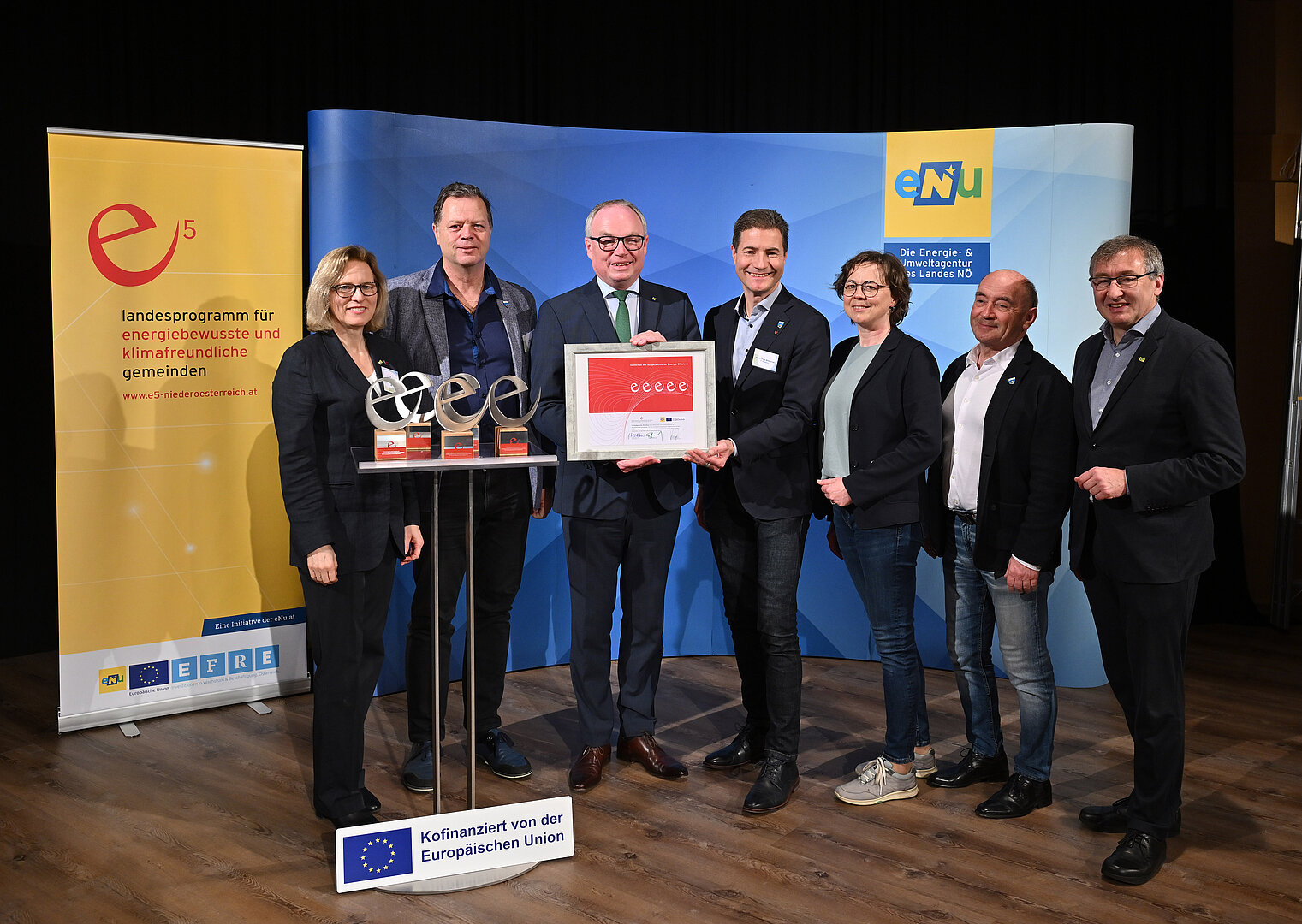 Im Stadtsaal Mank wurden 16 Gemeinden von der Energie- und Umweltagentur des Landes Niederösterreich (eNu) als e5-Vorbilder ausgezeichnet – die europäische Champions League der Energieeffizienz.