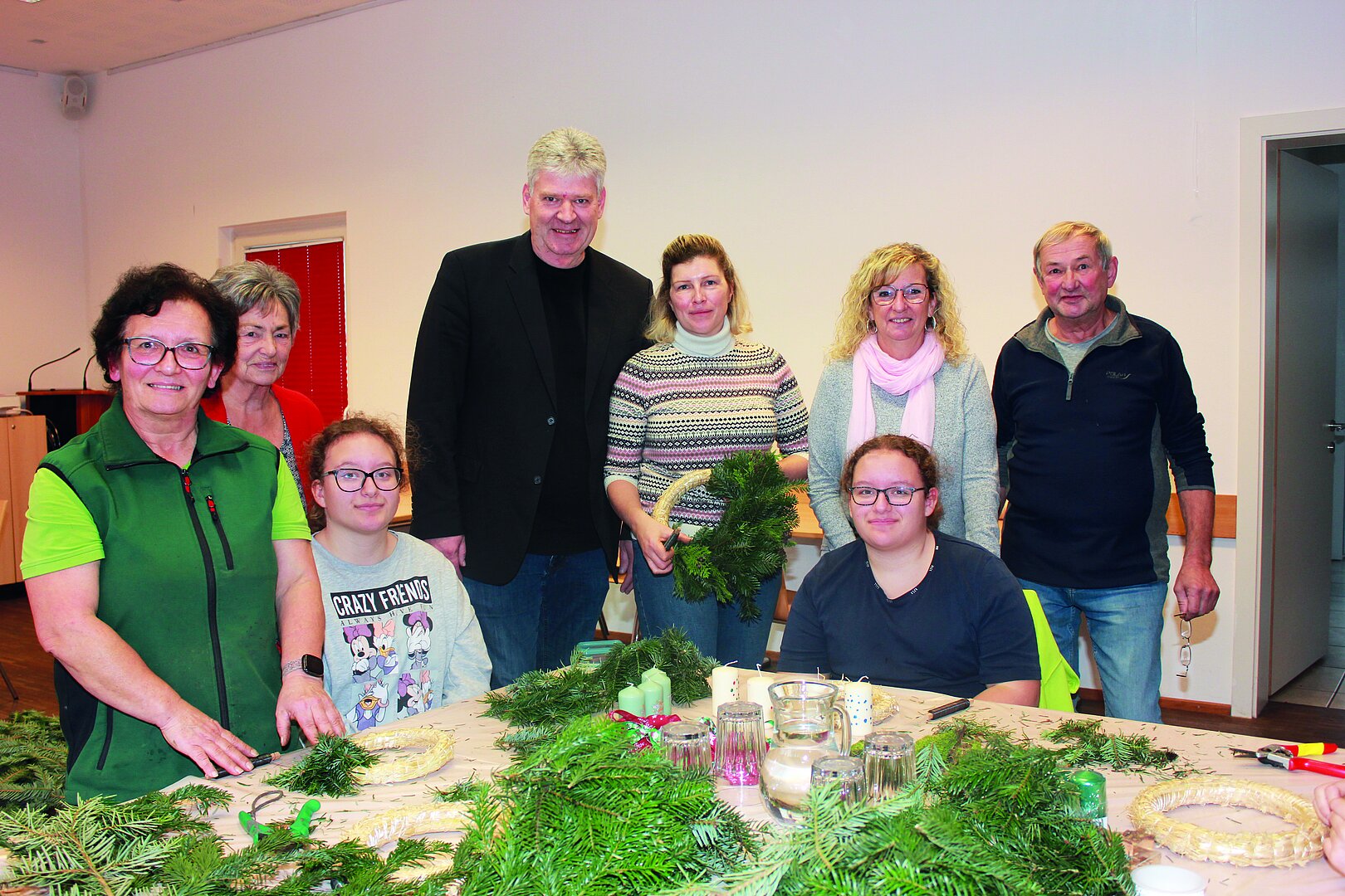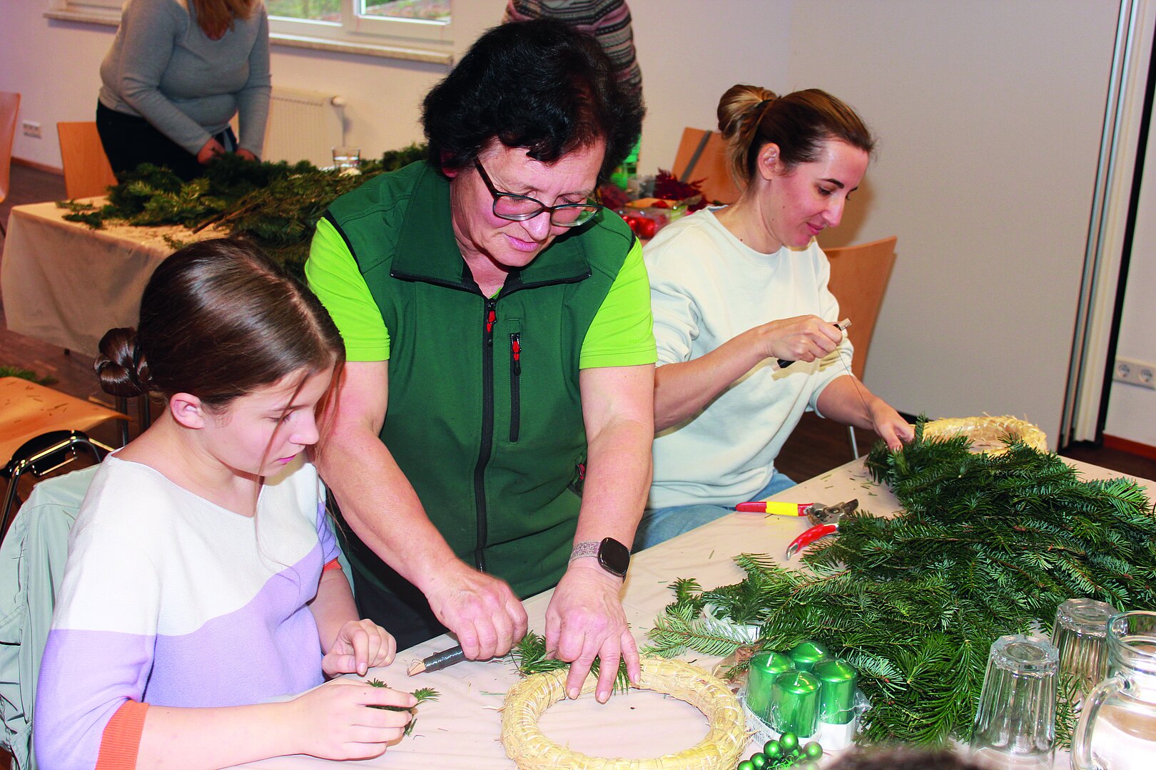 An diesem November-Nachmittag lag frisches Tannengrün und ein Hauch von Weihnachten im Haus der Zukunft in der Luft. Vierzehn Damen und Mädchen und ein Herr banden unter der Anleitung von Gabriele Haugensteiner Adventkränze aus Tannenreisig und schmückten und dekorierten diese mit Kerzen, Bändern und Naturmaterialien.