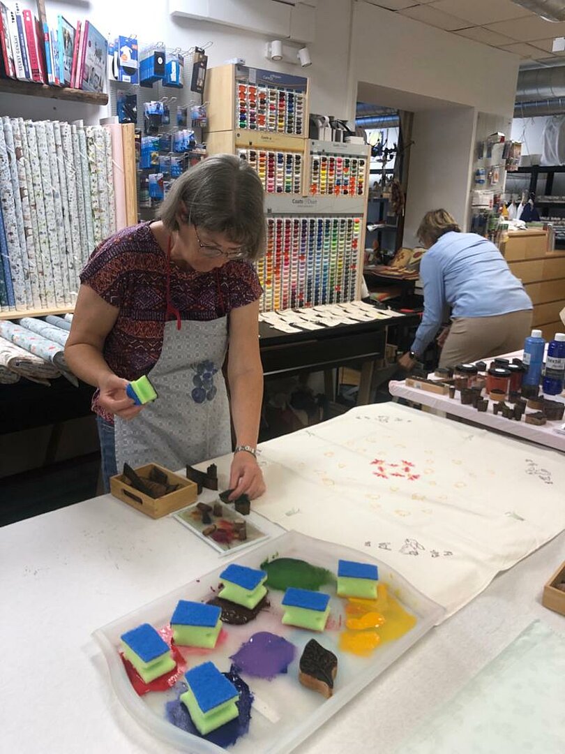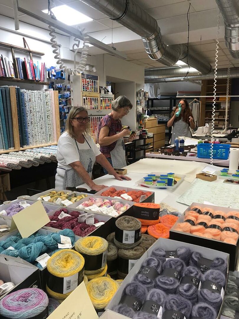 Am 14. Oktober 2023 fand zum ersten Mal eine Stoff-WerkStadt im Laden der Handarbeitsrunde (Grestner Straße) statt. Dabei konnten die TeilnehmerInnen mitgebrachte Stoffe wie Geschirrtücher, Tischtücher oder Taschen mit Holzmodeln bedrucken. Zur Auswahl standen 250 Holzmodel und eine Vielzahl an Farben, entstanden sind dabei einzigartige Kunstwerke, wie individuelle Adventkalender und Tischtücher.