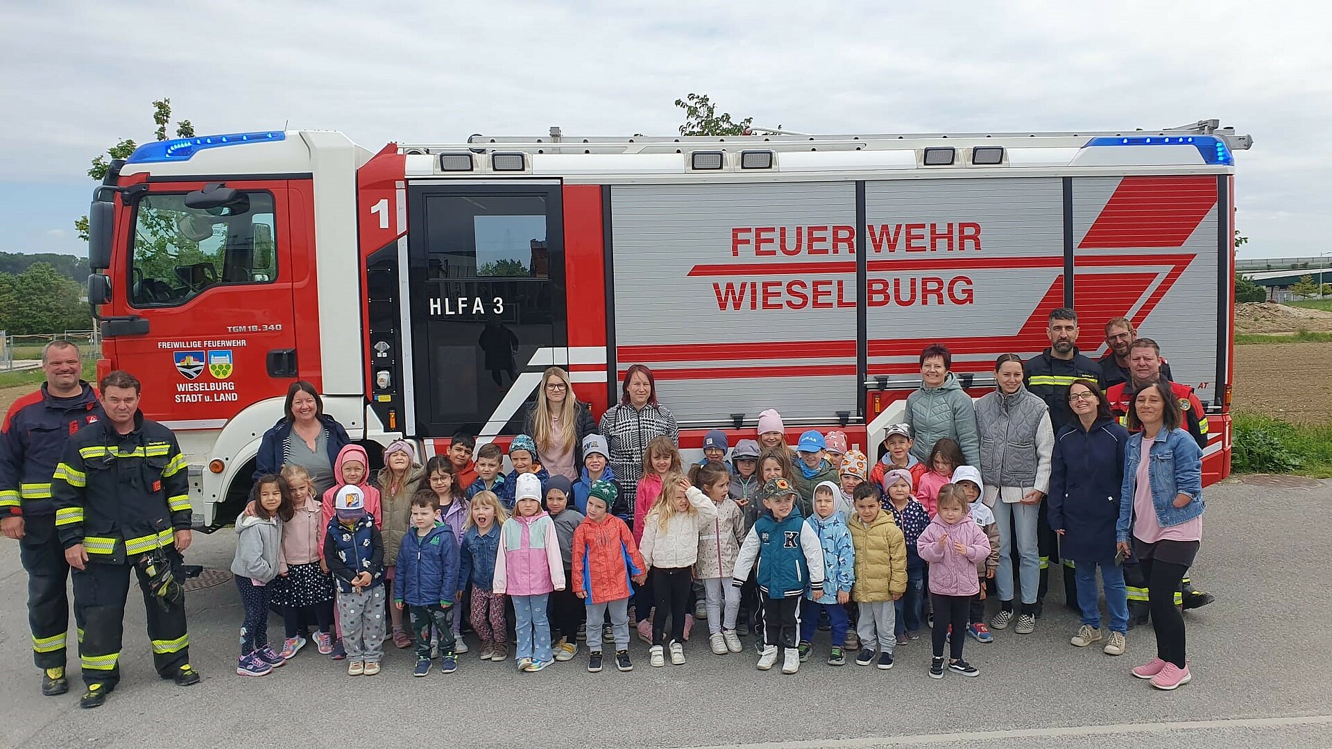 Großes Interesse und rege Beteiligung seitens des Kindergartenpersonals und vor allem der 36 Kinder erfuhr die Freiwillige Feuerwehr Wieselburg Stadt und Land bei einer Evakuierungsübung im Kindergarten in der Getreidestraße. Nach dem Üben des richtigen Verhaltens bei einem Notfall durften die Kinder die Einsatzfahrzeuge auch noch aus nächster Nähe begutachten und bekamen die wichtigsten Geräte erklärt. Zahlreiche Fragen konnten in der rund zweistündigen Übung beantwortet werden. Alles in allem ein abwechslungsreicher, spannender, aber auch lehrreicher Nachmittag für alle Beteiligten.