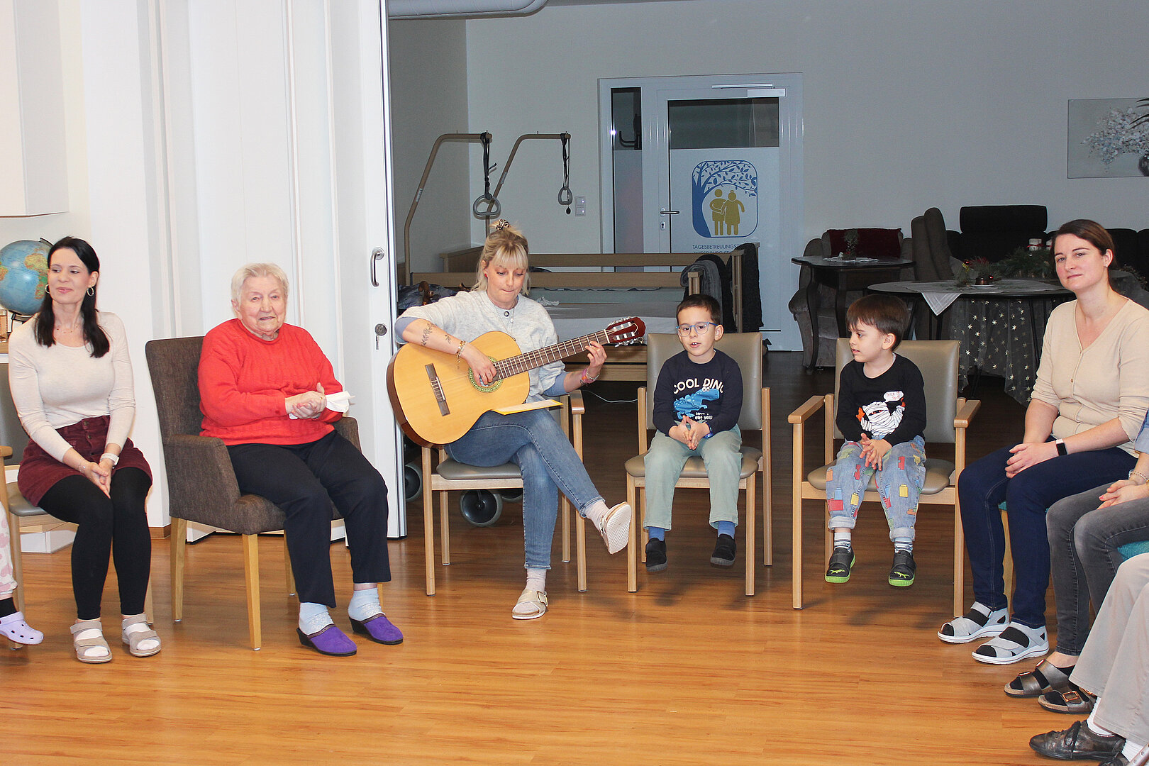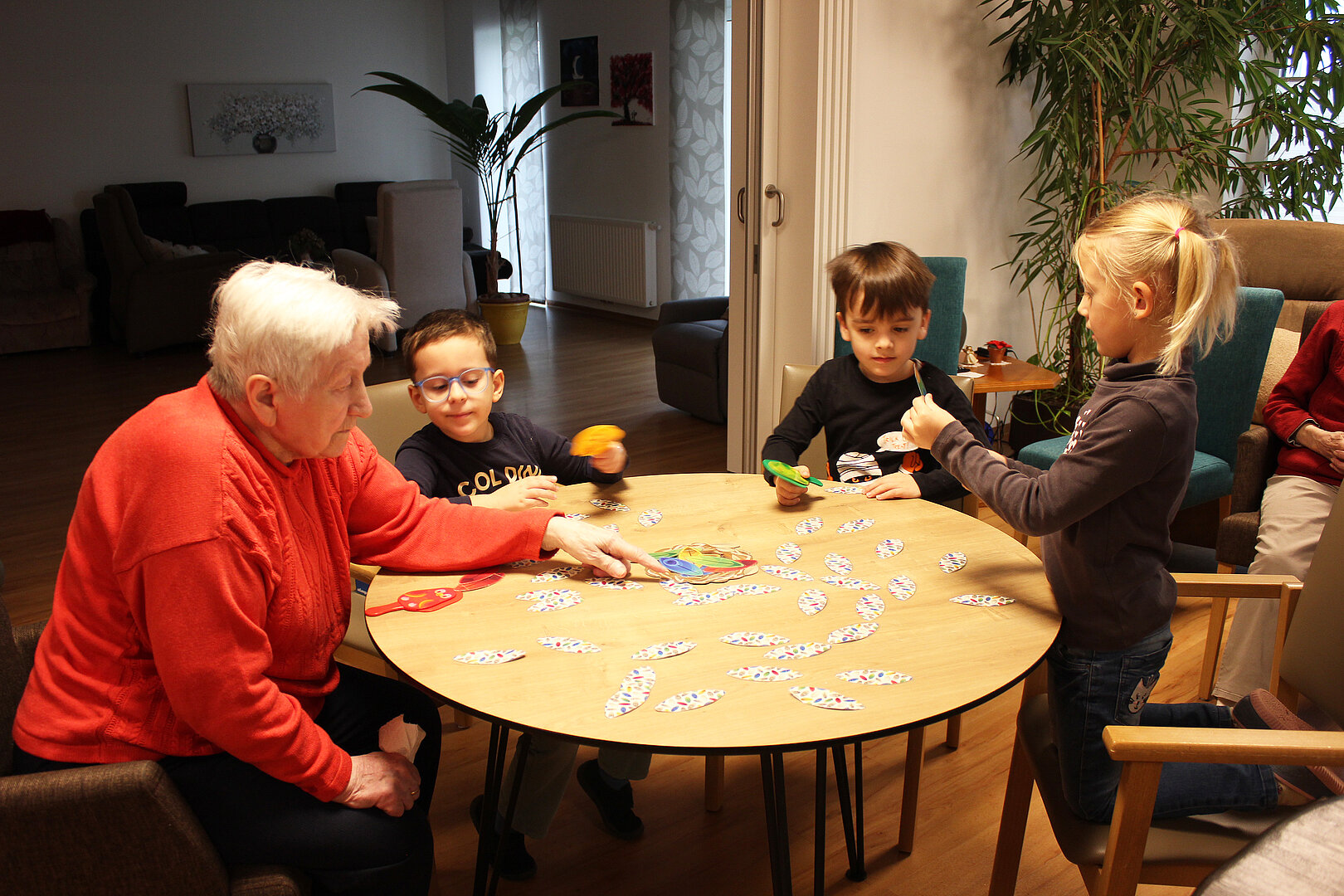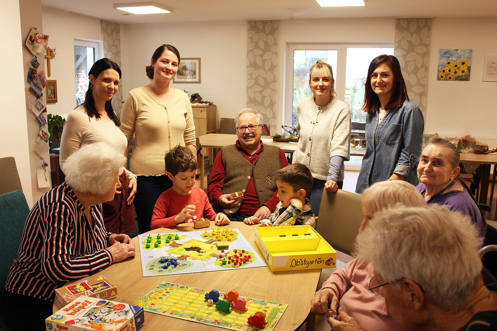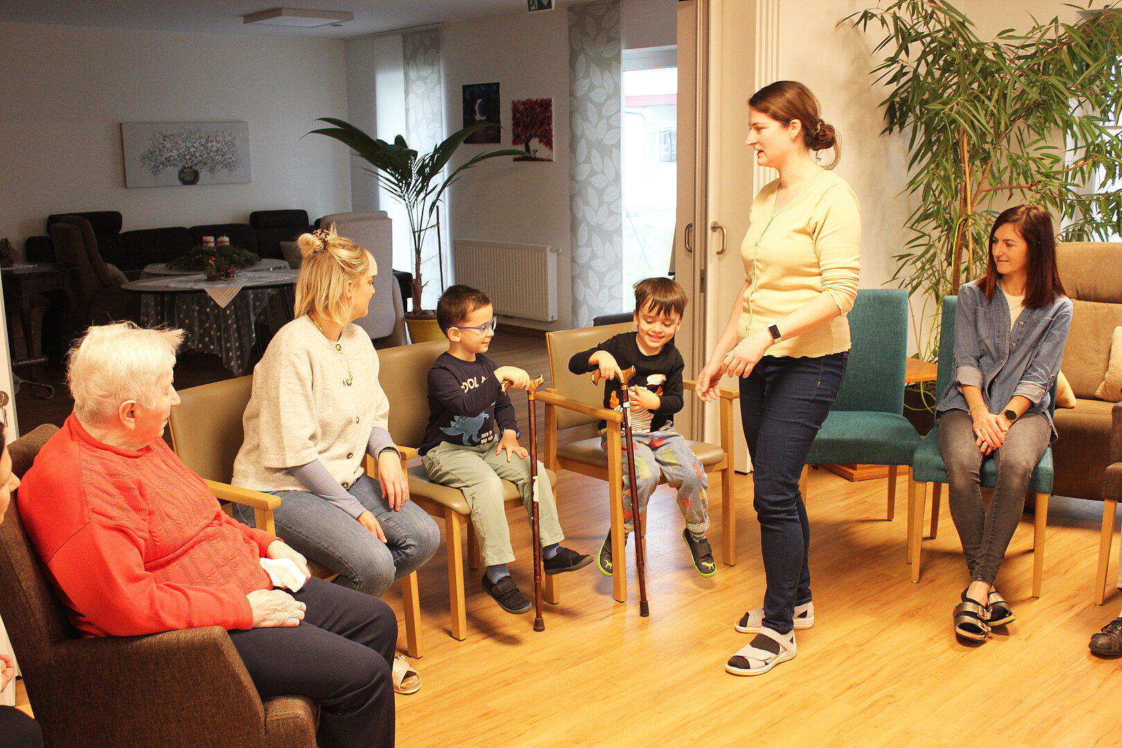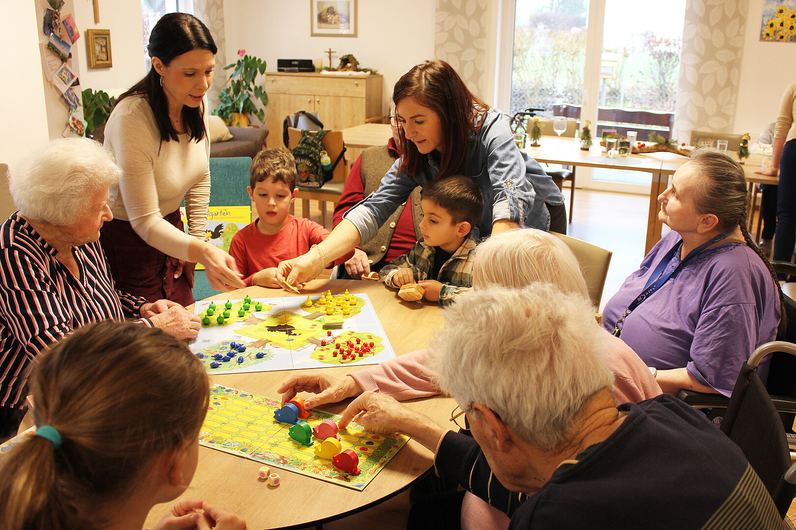 „Jung & Alt begegnen sich“ - Unter diesem Motto besuchten Kinder des Kindergartens Breiteneicher Straße die Gäste des Tagesbetreuungszentrums, um bei gemeinsamen Aktivitäten wie Singen, Basteln, Kochen, Backen oder Spielen die sozialen Kompetenzen der unterschiedlichen Generationen zu fördern.