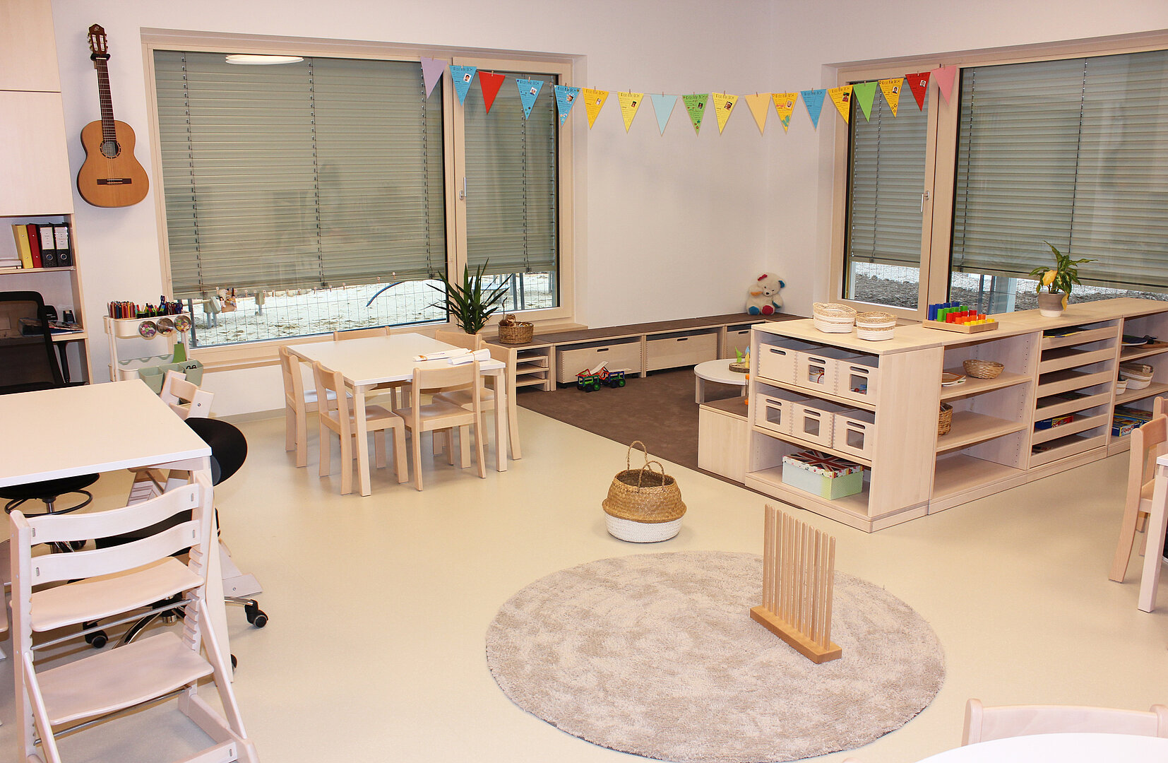 Hell, freundlich, modern und großzügig geplant so präsentiert sich der neue Kindercampus den Betreuerinnen, den Eltern und vor allem den Kindern. Auf rund 1.000 m² Nutzfläche haben hier zwei neue Kindergartengruppen und die vormals in der Neubaugasse beheimatete Kleinkinderbetreuung nach rund neunmonatiger Bauzeit ein neues Zuhause gefunden. Die beiden Leiterinnen Michaela Röska (Kindergarten) und Ute Bayer (Kleinkindbetreuung) zeigten sich sehr erfreut über die neuen Räumlichkeiten und fühlten sich gemeinsam mit den Betreuerteams und den Kindern von Anfang an ausgesprochen wohl.