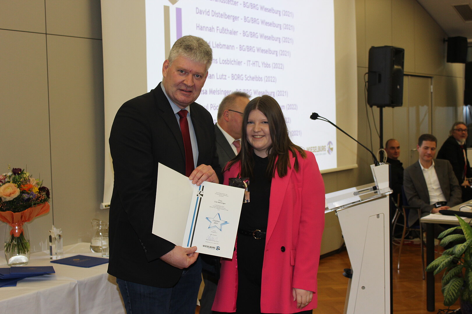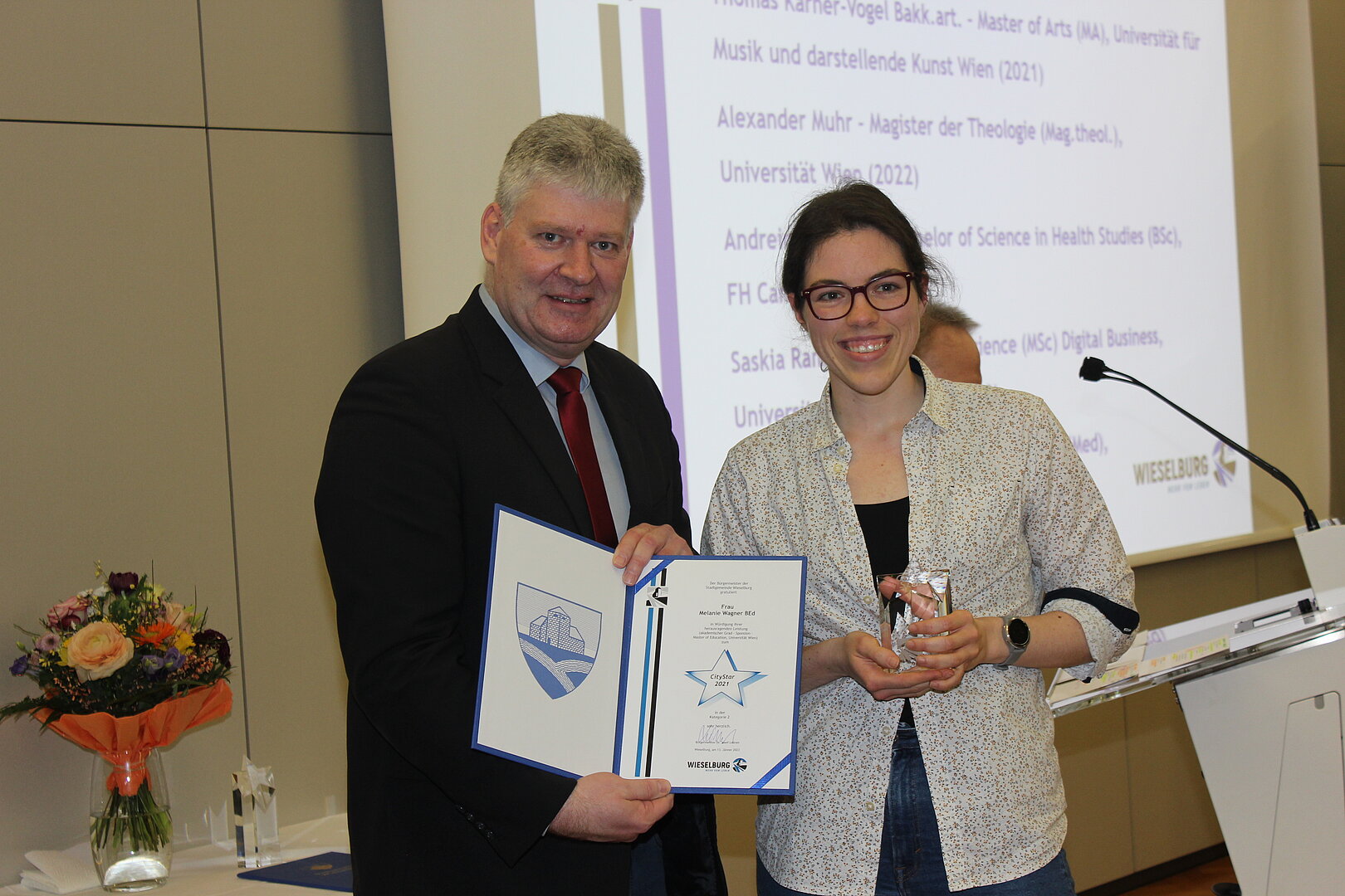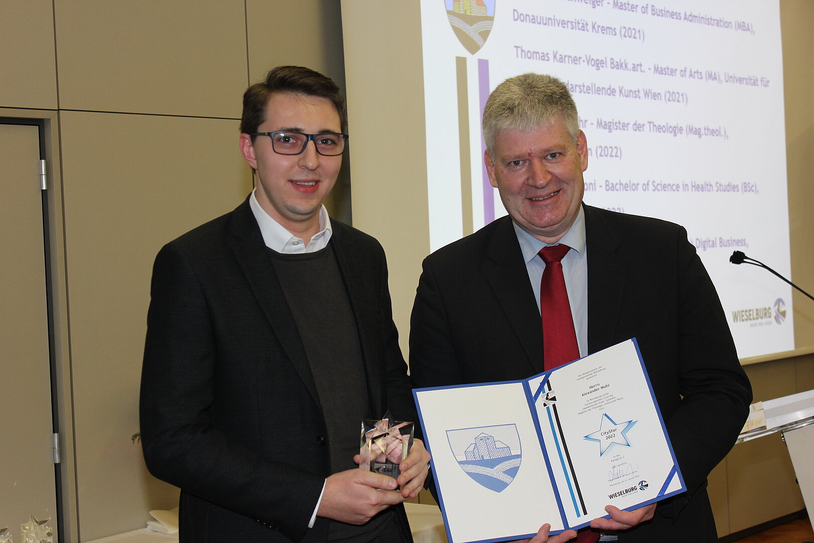 Im Anschluss an die Neujahrsansprache hatte Bürgermeister Josef Leitner die Ehre, die erfolgreichen Maturant/-innen, Lehrlinge und Sportler/-innen mit den City Stars der Kategorien 2 und 3 auszuzeichnen.