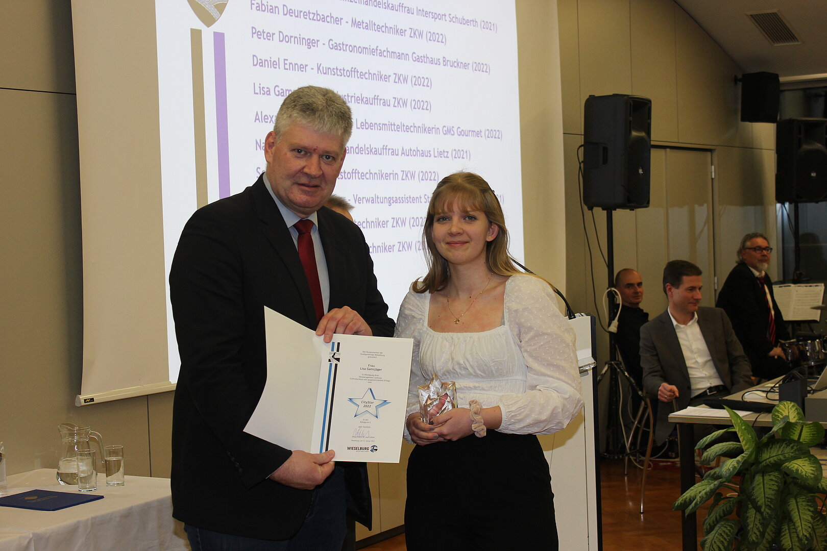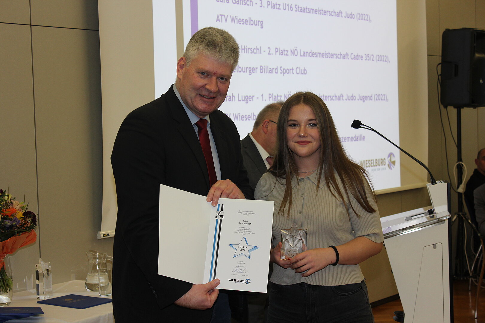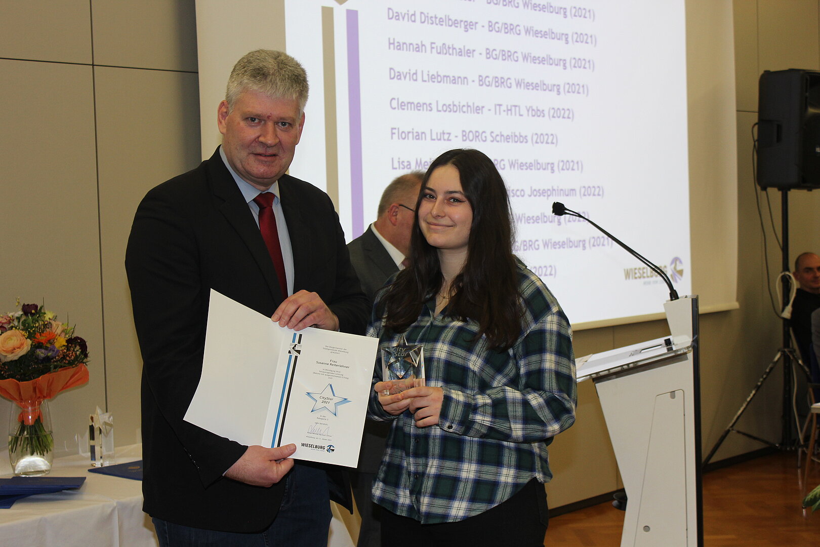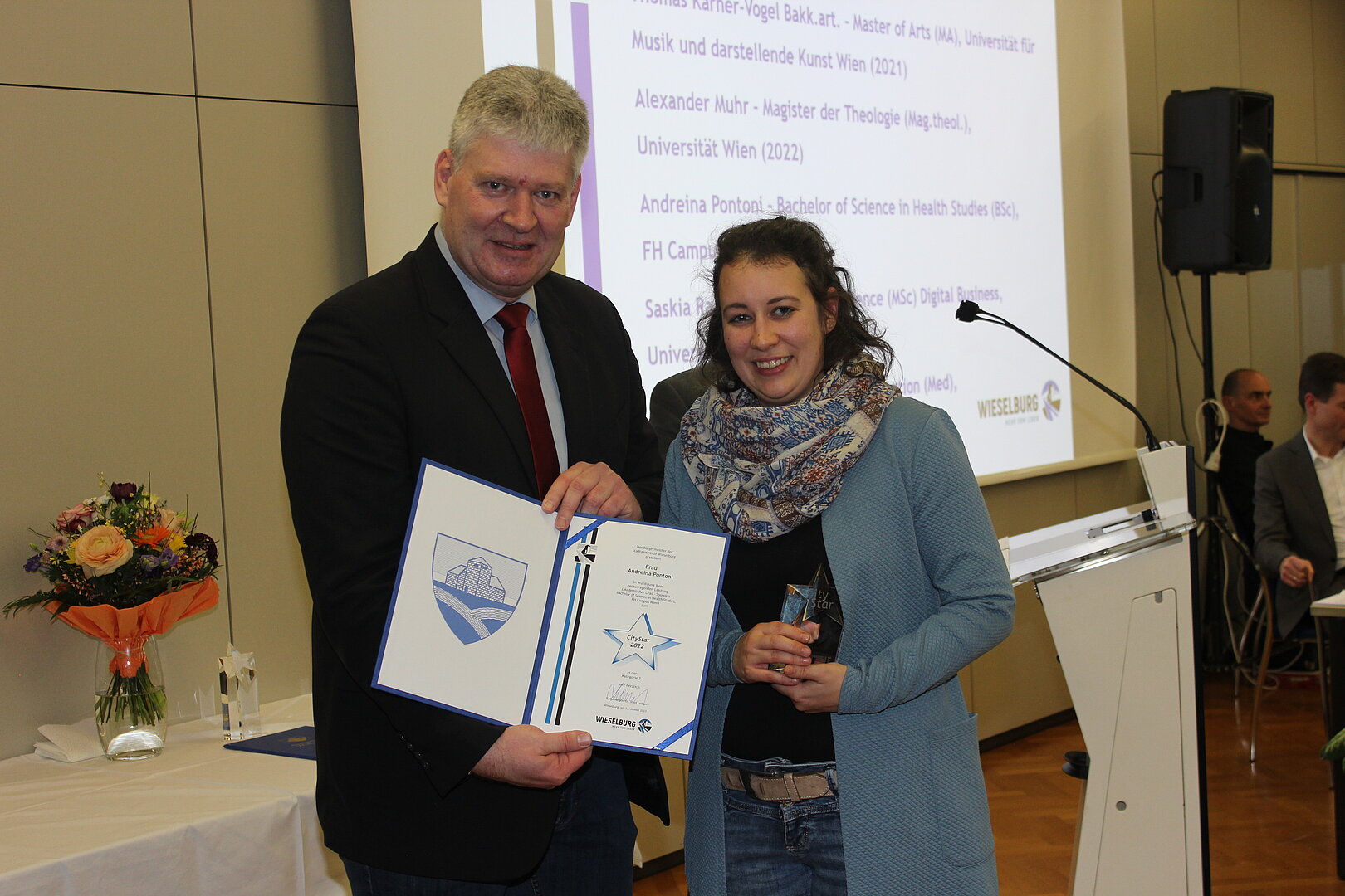 Im Anschluss an die Neujahrsansprache hatte Bürgermeister Josef Leitner die Ehre, die erfolgreichen Maturant/-innen, Lehrlinge und Sportler/-innen mit den City Stars der Kategorien 2 und 3 auszuzeichnen.