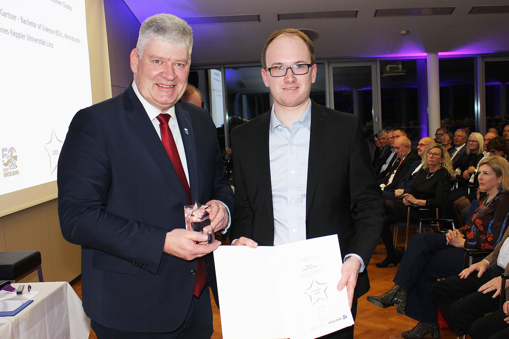 Im Anschluss an die Neujahrsansprache zeichnete Bürgermeister Josef Leitner erfolgreiche Maturantinnen und Maturanten, Lehrlinge, Akademikerinnen und Akademiker sowie Sportlerinnen und Sportler mit den City Stars der Kategorien 2 und 3 aus. Moderiert wurde dieser Programmpunkt in gewohnt launiger Weise von Wirtschaftsstadtrat Josef Lechner. Zuvor wurden jedoch noch Jennifer Schmidt und Kurt Hackl besonders gewürdigt: Die Tennislehrerin aus Gaming rettete im vergangenen Jahr durch ihr rasches Eingreifen und Wiederbelebungsmaßnahmen einem begeisterten Hobbytennisspieler das Leben.