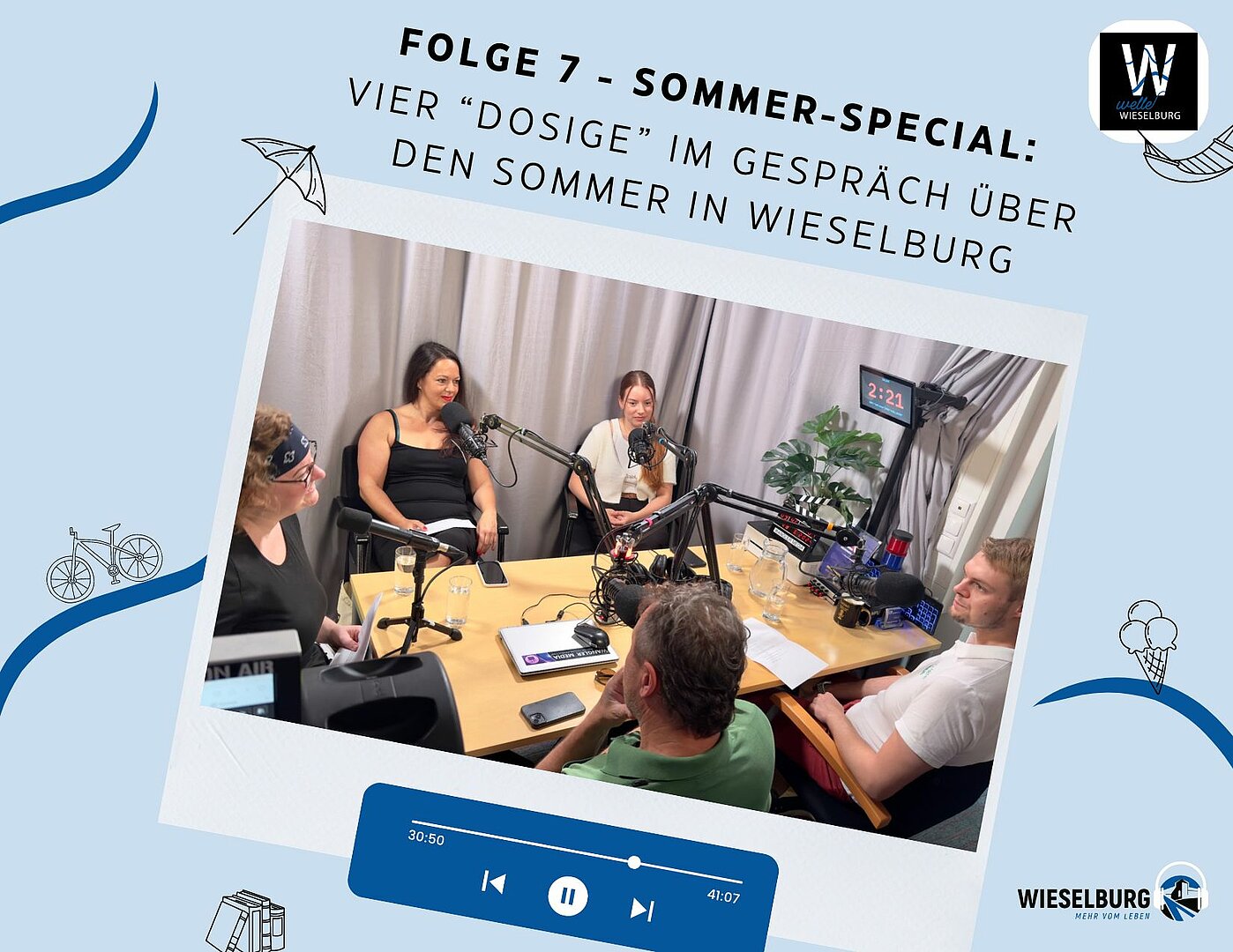 Radfahren, der Geruch von frisch gebrautem Bier, Eis essen, Bücher lesen, Zehen in den Teer tunken - das alles und noch so viel mehr kann Sommer am Land sein. Die vier Wieselburger-/innen Julia, Sarah, Peter und Jan unterhalten sich über ihre Gewohnheiten, Erinnerungen und Erholungstipps und haben auch jede Menge Empfehlungen für einen gelungenen Sommer in Wieselburg parat. Welche Veranstaltungen man auf keinen Fall verpassen darf, an welchen Orten es sich besonders gut aushalten lässt und wie man sich die warme Jahreszeit mit einem winzigen Trick ein kleines bisschen verlängern kann, erfährt man in diesem Sommer-Special der Welle.Wieselburg.