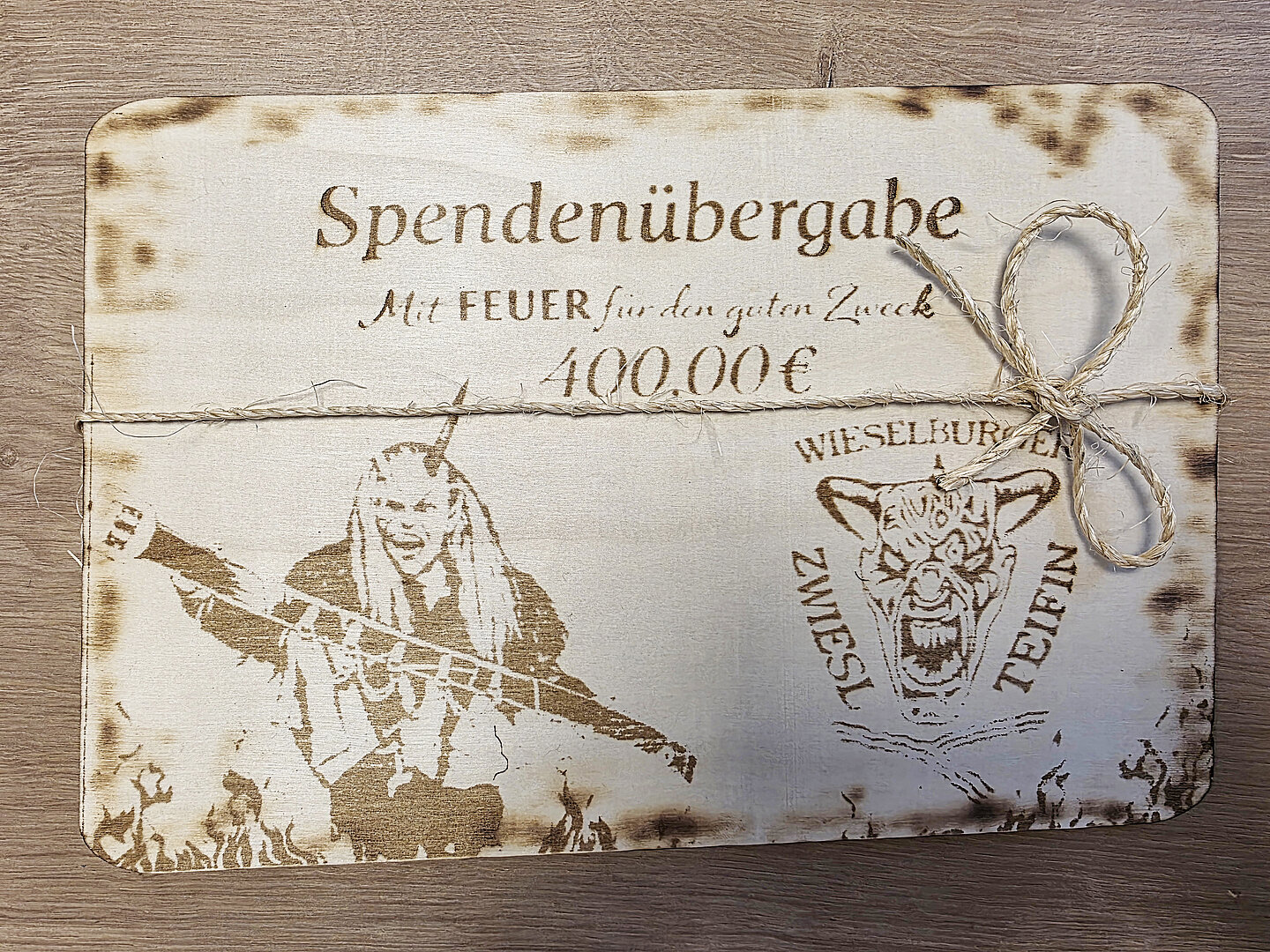 Die Versteigerung eines einzigartigen Gürtels, den die Wieselburger Zwieslteifin bei der Maskenausstellung der Red Fire Devils aus Krummnußbaum erspielt hatte, erzielte die beachtliche Summe von EUR 400,00. Der Erlös wurde von der Wieselburger Perchten- und Brauchtumsgruppe an das Tagesbetreuungszentrum Wieselburg übergeben. Dessen Leiterin Sabrina Loisl zeigte sich sehr erfreut und bedankte sich im Namen der Seniorinnen und Senioren: „Wir können unseren Tagesgästen damit weitere Aktivitäten anbieten.“