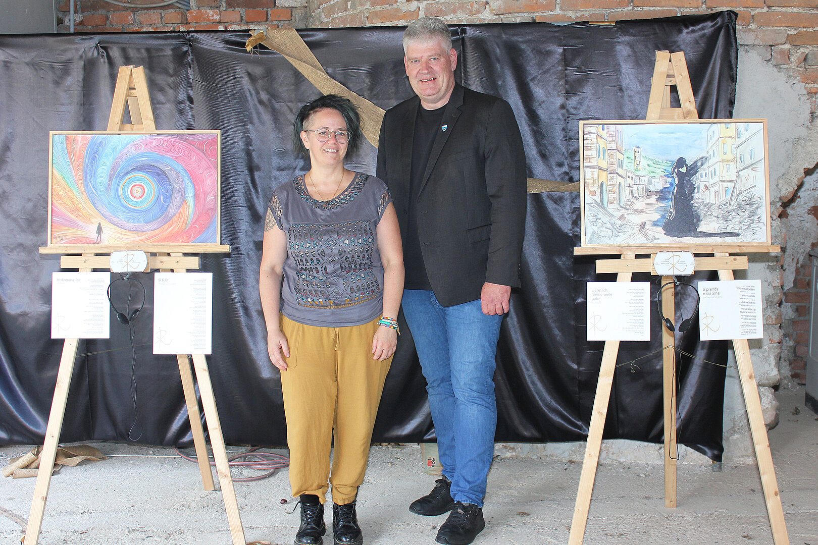 Die Ausstellung selbst – inspiriert von der Musik Michael Patrick Kellys – ist derzeit noch rund um die Uhr zugänglich und bietet Besucherinnen und Besuchern einen außergewöhnlichen Raum, in dem sich Bild, Wort und Ton berühren und durchdringen. Bgm. Josef Leitner nutzte auf alle Fälle die Gelegenheit dieser sehenswerten Ausstellung einen Besuch abzustatten. „Eine überaus gelungene Multimedia-Ausstellung, zu der ich herzlich gratulieren möchte. Die Kunstwerke und das Areal bilden eine harmonische Einheit.“