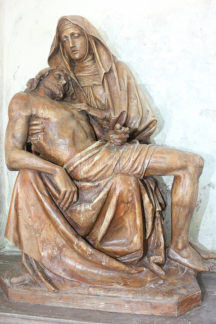Die "Kapelle am Berg" beherbergt eine aus Lindenholz geschnitzte Grödner Pietà aus der Bildhauer-Werkstatt Stueflesser. Die 1913 feierlich geweihte Statue war urspünglich färbig gefasst.